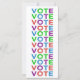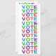 Nas cores de azul empoeirado, verde, vermelho e roxo, a palavra VOTE em letras grandes. Partilhar sentimentos nas eleições. Representa todas as partes do espectro político. Democratas, Partido Verde, Republicanos e nenhuma preferência partidária ou independente podem encontrar uma forma de trabalhar juntos também. Muita cor para uma mensagem brilhante e positiva para sair da votação (GOTV).