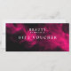 Este design de vale-presente moderno adiciona um toque de entusiasmo e sofisticação às opções de oferta da sua empresa. Com a vibrante fumaça cor-de-rosa neon girando graciosamente contra um fundo preto elegante, este vale não é apenas um pedaço de papel, é uma promessa de experiências memoráveis. O texto branco simples, mas elegante, garante que os detalhes sejam claros e facilmente legíveis. Quer você queira oferecer aos seus clientes um presente ou recompensa exclusivos, este design de comprovante faz uma declaração que diferencia sua empresa. É um convite para um mundo de momentos especiais e diversão, permitindo que seus clientes explorem o que seus negócios têm a oferecer. Compartilhe a alegria com nosso vale-presente moderno e eleve sua experiência de doação.