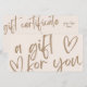 Dê à sua marca uma vantagem ousada e na moda com este certificado de presente inspirado em boho. Apresentando uma fonte moderna, elegante, emparelhada com cores neutras suaves, esta design combina personalidade confiante com um toque elevado e minimalista. É o equilíbrio perfeito entre diversão e profissional — ideal para marcas que querem se destacar sem sobrecarregar sua estética. Quer você esteja oferecendo serviços, produtos ou uma experiência especial, este vale-presente é totalmente personalizável com seus detalhes comerciais, informações de oferta e opções de contato. Excelente para salões, marcas de estilo de vida, criadores ou qualquer negócio com uma vibração moderna.