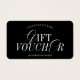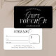 Cartão de vale-presente elegante com fundo preto e branco minimalista, fontes de caligrafia nostálgica e design de tendências. Este design de cartão-presente totalmente editável inclui espaço para os detalhes de seu negócio e vale-presente. Excelente a ser usado para seu salão de beleza, lash business, unhas spa ou qualquer outro serviço profissional para criar certificados de presentes para clientes.