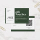Design moderno em verde escuro para seu vale-presente personalizado. Selecione a opção ''Editar usando a Ferramenta de Design'' para personalizá-la ainda mais. *recomendado para editar usando o computador