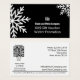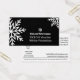 A placa adaptável para vencedores da promoção de inverno de negócios faz parte da coleção de ferramentas de Marketing de Natal e inverno em preto e branco. Este cartão de paisagem apresenta um floco de neve eterno branco decorativo na frente. Há um campo de texto negro com marcadores para o logotipo, o nome e o tipo e o valor do comprovante, tudo em branco. No verso, o texto preto é colocado sobre um fundo branco. O lado esquerdo inclui um "Scan Specials!" CTA, um código QR para navegação fácil no site ou fonte de informações, um ID de rastreamento (XYZ25) e um convite para "Conectar e acompanhar" as identificações de mídia social e as hashtags de promocional da empresa. Os dados de contato físico estão à direita. Um separador inferior destaca os termos: "apresente este cartão por $XX da sua próxima visita. Sem valor de caixa. Expira XX.XX.20XX." Este vale-presente é uma excelente ferramenta de marketing de promocional para pequenas empresas que oferecem serviços programados, operam lojas de tijolos e argamassas ou suas próprias lojas ou cafés artísticos. Para obter mais inspiração de marca, visite www.KBMD3signs.com. Entre em contato conosco em info@KBMD3signs.com para obter assistência personalizada. #ZazzleMade #MarketingPromotion #BlackandWhiteSnowflake #LoyaltyMarketing #KBMD3Signos