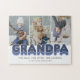 Quebra-cabeça de jigserte bonito com 3 fotos da família para você substituir pelo seu, o título "vovô", um ditado personalizado que lê "o homem, o mito, a lenda", e os nomes dos netos.