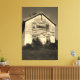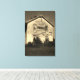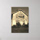 Foto de sépia da Prefeitura dos anos 1800 destacada em uma longa tela impressa.