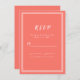 Uma placa simples e elegante de receptáculo RSVP de casamento apresenta um design minimalista com uma borda dupla de quadros em branco nítido sobre um fundo de coral de tendência. Personalize com a data do seu casamento. Espaços fornecidos para seu convidado adicionar seus nomes e respostas para uma resposta de retorno. As letras e os scripts estão em branco nítido. A parte de trás do cartão corresponde a um coral vivo sólido.