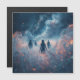 Four shadowed figures walk through glowing mist, surrounded by swirling stars and cosmic light.
