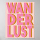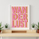 Ilumine qualquer lugar em sua casa com este legal poster de tipografia rosa com a palavra "Wanderlust" em letras negrito