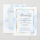 NOVO! Casamento leve do barato (papel fino). Azul-céu. Dourada armação sobre um espantoso traço de lavagem com aquarela que dá a sensação de nuvens. Arte original por WhimsicalArtwork