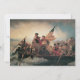 Ilustração Vintage viagem e design de transporte apresentando uma pintura bela Era Vitoriana intitulada Washington Cruzando o Delaware, 1851. Pelo artista Emanuel Leutze. Comemora a travessia do Rio Delaware pelo General George Washington durante a Guerra Revolucionária Americana, com soldados militares a carregando Americana na noite de dezembro de 1776. Essa ação histórica foi a primeira jogada num ataque surpresa contra as forças sianas em Trenton, Nova Jersey, na Batalha de Trenton. A bandeira dos Estados Unidos da América, na época, não eram as estrelas e listras atuais que são pintadas, a bandeira historicamente precisa teria sido a Grande Bandeira da União, oficialmente abrigada pelo próprio Washington em 2 de janeiro de 1776.