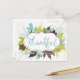 Folhas de aquarela em verde-oliva, castanho, chalé e aqua claro, com madeira - olhem para o fundo em branco. Lê "Obrigado" em uma fonte moderna, na moda, sobre um quadro colchete. Perfeito para o feriado de Ação de Graças ou até para o obrigado de casamento!