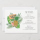 O convite para o fim de semana da festa de bachelorette tropical apresenta uma menina de aquarela em maiô e flores tropicais. Detalhes do evento no verso do convite. Pode ser personalizado para qualquer evento.
