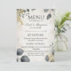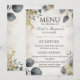 Elevate your reception tables with this elegant eucalyptus greenery wedding menu card. Featuring delicate watercolor botanical leaves and sophisticated classic script typography, this design perfectly balances a rustic and modern aesthetic. This flat 5x7 menu provides ample space to showcase your starters, main courses, and desserts for a seamless dining experience. Ideal for boho, garden, or woodland-themed weddings, the soft neutral palette and gold-toned accents complement any floral arrangement. Easily personalize the names, date, and menu details to create a cohesive look for your special day.