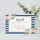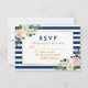 Watercolor Floral Blue Stripes Casamento RSVP