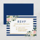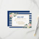 Cor-de-água Rosa Esbranquiçada Blush Branco Floral Azul Stripes Casamento Cartão RSVP - Verso Azul