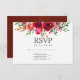 Cartões RSVP de casamento florais de aquarelas com rosas e peões vermelhos, roxos, cor-de-rosa e arrojados.