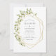 O sábio verde e branco da moda d'água deixa convite para casamento com a moldura geométrica dourada.