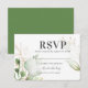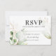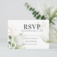 Cartões de resposta ao casamento Elegante de eucalipto, com um fundo branco clássico, uma mostra moderna de cor d'água de folhagem verde da floresta, sotaques florais de ouro de tendência, e um modelo de na moda rsvp que é fácil de personalizar.