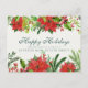 Watercolor Red e Green Holly e Poinsettia florescem flores. O logotipo da sua empresa pode ser adicionado