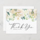 Envie obrigados para convidados e clientes com este cartão de papelaria personalizável do obrigado. Apresenta cor d'água branca e marfim e rosas com acentos de folha de ouro verdes e falsos. Personalize este cartões de agradecimentos floral primavera adicionando seus próprios detalhes de evento. Este cartões de agradecimentos de aquarela é perfeito para casamentos, chás de panela, chás de fraldas e outros eventos. casamento outono,