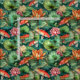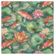 Um belo tecido com um padrão perfeito de koi, lírios de água e repolhos de lírios de água.