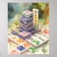 Bonito aquarela mahjong arte apresentando três impressões originais de arte de Nicole.