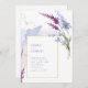 Esta elegante coleção de casamento usa uma paleta colorida impressionante, incluindo o periwinkle, a ameixa e o blues macio para criar papelaria e material de festa correspondentes para o seu dia especial. Os florais de aquarelas e os traçados de tinta cintilantes proporcionam um fundo de captura de olhos. Script manuscrito emparelhado com fonte serif clássica empresta um toque moderno. O cartão 'Convite' do casamento mostrado aqui fornece uma modelo para adicionar facilmente seus próprios detalhes de evento. Procure ID954 para ver outras peças e opções de cor para este conjunto.