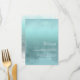 Este menu de recepção de casamento moderno é ligeiramente informal, com sensação quente e pessoal, e apresenta um design abstrato, aquarela, semelhante a reflexos na água. Este exemplo tem uma paleta de cores de gradiente de verde-mole a verde-mar profundo. Personalize com as iniciais da noiva e do noivo, a data do casamento e os detalhes usando o modelo fornecido. Procure ID774 para ver o conjunto de correspondência completo e opções de cor adicionais.