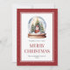 Cartão de Natal Merry com dentro de Natal Santa Claus. Personalize facilmente este cartão vermelho de festas de neve com seu nome familiar e o ano.