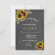 Design de cartas românticas, rústicas, com buquês de girassol a cores aquáticas, um quadro de marfim com cantos redondos, setas com corações e girassóis como divisor, tudo em um fundo de celeiro antigo. Use a ferramenta Personalizar para adicionar suas informações. Itens correspondentes podem ser encontrados na minha Coleção Rústica de Lingueiros Solares.