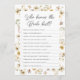 Um cartão de jogo moderno, de chá de panela de vassoura para "Quem conhece melhor a Noiva?" apresenta uma fonte de escrita romântica, uma fonte serif moderna e uma fronteira de flores silvestres delicadas em tons suaves de rosa-pincel, amarelo, roxo, marfim e verde. Os convidados podem escrever as suas respostas nas linhas e marcar os corações se a sua resposta estiver correta. Verifique os itens correspondentes nas coleções "Chás de panela" e "Watercolor Wildflower".