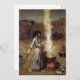 John William Waterhouse convida o Círculo Mágico. Pintura a óleo na canvas de 1886. O pintor de Pré-Raphaelite John Waterhouse desenhava regularmente temas literários e mitológicos. O Círculo Mágico continua o fascínio do artista pelo sobrenatural, mostrando uma feiticeira com cabelo escuro desenhando um círculo mágico na terra com uma varinha. Vestindo um vestido azul decorado com figuras persas, ela fica ao lado de um caldeirão fumando sobre as brasas laranja e vermelha de um fogo brilhante. Os corvos pretos ficam por perto observando o ritual se desdobrar. Um presente de excelente para fãs de J.W. Waterhouse, os Pré-Raphaelitas, magia, feitiçaria e pintura romântica inglesa.