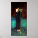 John William Waterhouse Circi Invidiosa poster. Pintura a óleo na canvas desde 1892. O pintor inglês John Waterhouse Circe Invidiosa retrata uma cena clássica das Metamorfoses de Ovid. A Deusa Circe fica vestindo um belo vestido de pavão, lançando uma tigela de poção verde na piscina em que sua rival romântica Scylla vai tomar banho. As águas abaixo da bolha e transformam um aquamarino encantador. Um presente de excelente para fãs da Waterhouse J.W., da mitologia grega, dos Pré-Raphaelites, Ovid e da pintura romântica inglesa.