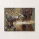 John William Waterhouse o quebra-cabeça mágico do círculo. Pintura a óleo em canvas desde 1886. O Waterhouse de John do pintor do Pre-Raphaelite seleccionou regularmente dos temas literários e mitológicos. O círculo mágico continua o fascínio do artista com o sobrenatural, descrevendo um sorceress com o cabelo escuro que tira um círculo mágico na sujeira com uma varinha. Vestindo um vestido azul decorado com figuras persas, está ao lado de um caldeirão que fuma acima dos embers alaranjados e vermelhos de um fogo de incandescência. O suporte preto dos corvos que olha próximo o ritual unfold. Um grande presente para fãs de J.W. Waterhouse, Pre-Raphaelites, mágica, bruxaria, e pintura romântica inglesa.