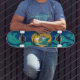 Wave Rider: A Aventura Oceânica de Skateboard Experimenta a liberdade de andar pelas ruas no nosso skate desenhado de forma exclusiva, inspirado no ambiente sereno de um navio de cruzeiro e ondas. "seu presente, seu presente, Cruise" "navio, skate, praia, ondas", "palmeiras, blues, turquesa, litoral", "aventura, ladeira, rua, paraíso, tropical", "tranquilidade, urbana, fuga, lazer, entalhe", "ilha, vibrações, viagem", "elegante, ensolarado, declaração"