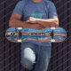 Fresh coastal stripes in blue, teal, and green meet a weathered‑wood texture and a playful dog face. A stylish, summer‑vibe skateboard deck that feels both chic and fun.