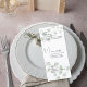 Set the tone for a beautifully curated dining experience with this elegant wedding menu, adorned with soft watercolor greenery and delicate eucalyptus leaves. The design features a graceful flowing script for each course, paired with clean, classic text for the menu details—creating a refined balance of modern simplicity and timeless romance.