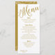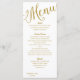 Esta design de tipografia / caligrafia moderna mostra a palavra "Menu" no topo em ouro A cor do design está definida como ouro, mas você pode mudá-la para qualquer coisa que quiser apenas mudando a cor de fundo. **HOW TO CHANGE YOUR DESIGN COLOR** 1) Clique no botão "Personalizar". 2) Clique no link "PERSONALIZAR" na parte inferior. Então você terá a opção de mudar sua "COR DE FUNDO" para sua cor de casamento. Não se esqueça de mudar a cor do texto para corresponder ao seu design.