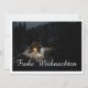 Die Karte zeigt eine stimungsvolle, winterliche Szenerie mit einer kleinen, beleuchteten Holzhütte inmitten eines verschneiten Waldes. Die warme Lichtquelle im Inneren schafft einen schönen Kontrast zur dunklen, friedlichen Umgebung. Der elegante "Feliz Natal"-Schriftzug em Weiß verleiht dem Motive eine festliche Nota. 🎄 ✨ Deutsch