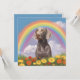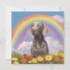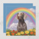 Um cartão de compaixão personalizado do Weimaraner com uma bela pintura de um Weimaraner numa colina celestial com uma bela sobrecarga do arco-íris. Simbolizando o cão Weimaraner passou a ponte do arco-íris para o céu careca. Você pode personalizá-lo com o nome do seu próprio cachorro Weimaraner ou qualquer outro texto no verso do cartão. Faz um memorial especial ou um presente de simpatia para qualquer amante de cachorro Weimaraner se seu querido cachorro passou.