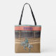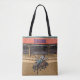 Bolsa de tote do tema rodeio ocidental com cavaleiros broncos e arena rodeada à frente e atrás.