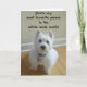Montanhas Terrier branco ocidentais bonitos que olha acima com uma cara loving adorável.