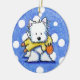 Ornamento com a arte da raça de cão Westie Terrier por parte do livro infantil Illustrator, Kim Niles.