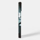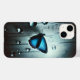 A stunning, vibrant blue butterfly rests with its wings closed on a rain-covered glass surface. Countless water droplets scatter across the wet glass like tiny diamonds. The background is softly blurred, suggesting a misty garden or foggy window. The overall mood is tranquil yet magical, with hyper-realistic details—each droplet and wing scale meticulously rendered.