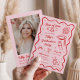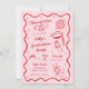 Um convite para formatura peculiar que apresenta um quadro ondulado, gráficos de rabisco, uma paleta de cores vermelha e rosa sobre a tendência e uma fonte escrita à mão. Este convite divertido é fácil de editar e é perfeito para a festa de formatura de uma garota. Par com qualquer coisa da coleção TILLY para um olhar coeso.