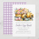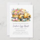 Whimsical Floral Bunny Easter Egg Hunt Invitation - apresenta um adorável coelho da Páscoa cavalgando em um caminhão de safra amarela cheio de lindas flores pastel e acentuado com ovos de Páscoa, maravilhosamente decorado para a estação. A parte de trás do convite é gingham. Nosso modelo torna tão fácil para você personalizar nosso convite para sua Caça de Ovos de Páscoa.