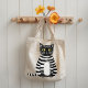A charming tote bag featuring a whimsical black and white striped cat illustration on a textured neutral background. This playful folk-art style design is perfect for cat lovers, art enthusiasts, and anyone who enjoys unique everyday accessories. Ideal for shopping, school, work, or casual outings, this reusable tote combines creativity, practicality, and personality in one stylish bag.