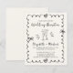 Budget light cream wedding reception invitation featuring a wavy scallop frame adorned with coquette bows, whimsical hand drawn illustrations of hearts and champagne glasses, and "Wedding Reception" and the names of the bride and groom in a fun, playful script. NOTE: This budget-friendly paper is thin, similar in weight to photo paper -- a larger and thicker 5x7 traditional card stock version is also available (message us for the link).