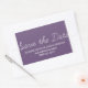 Whimsy Salve os adesivos de Data em roxo e branco com um design de tipografia de script simples e divertido. Essas tendências salvam os adesivos de data são fáceis de personalizar com seus detalhes de casamento. Para obter mais opções de personalização, clique no botão Personalizar Ti.