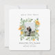 O Casamento de Folhagem de Girassóis Salva a Data. Foto. Site de casamento no fundo. Simples. Minimalista. Quadrado Arredondado.