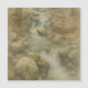 A serene watercolor-style depiction of a mountain stream cascading gently over smooth rocks, surrounded by bare trees and a misty, muted forest. The soft tones and flowing water evoke a sense of calm and introspection, as if nature itself is quietly whispering in the silence